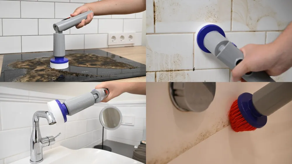 ✅ Snabbkopplingssystem för borsthuvuden: innehåller flera specialiserade borsthuvuden för varje städuppgift. Varje uppsättning är färgkodad så att du aldrig blandar ihop badrumsverktyg med köksverktyg. Hårda borst för fogar och kakel, mjuka huvuden för känsliga ytor, hörnborstar för trånga utrymmen och platta borstar för stora ytor.